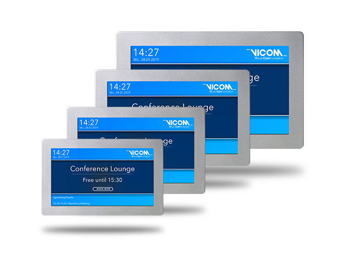 Alle kabelgebundenen Displays können optional mit Touch geliefert werden. Damit können direkt am Panel spontane Buchungen, Buchungsverlängerungen oder Neubuchungen eingegeben werden. Über VisDoor Touch kann auch die Schließanlage der Tür aktiviert werden; nur über Passworteingabe ist dann der Zutritt möglich.